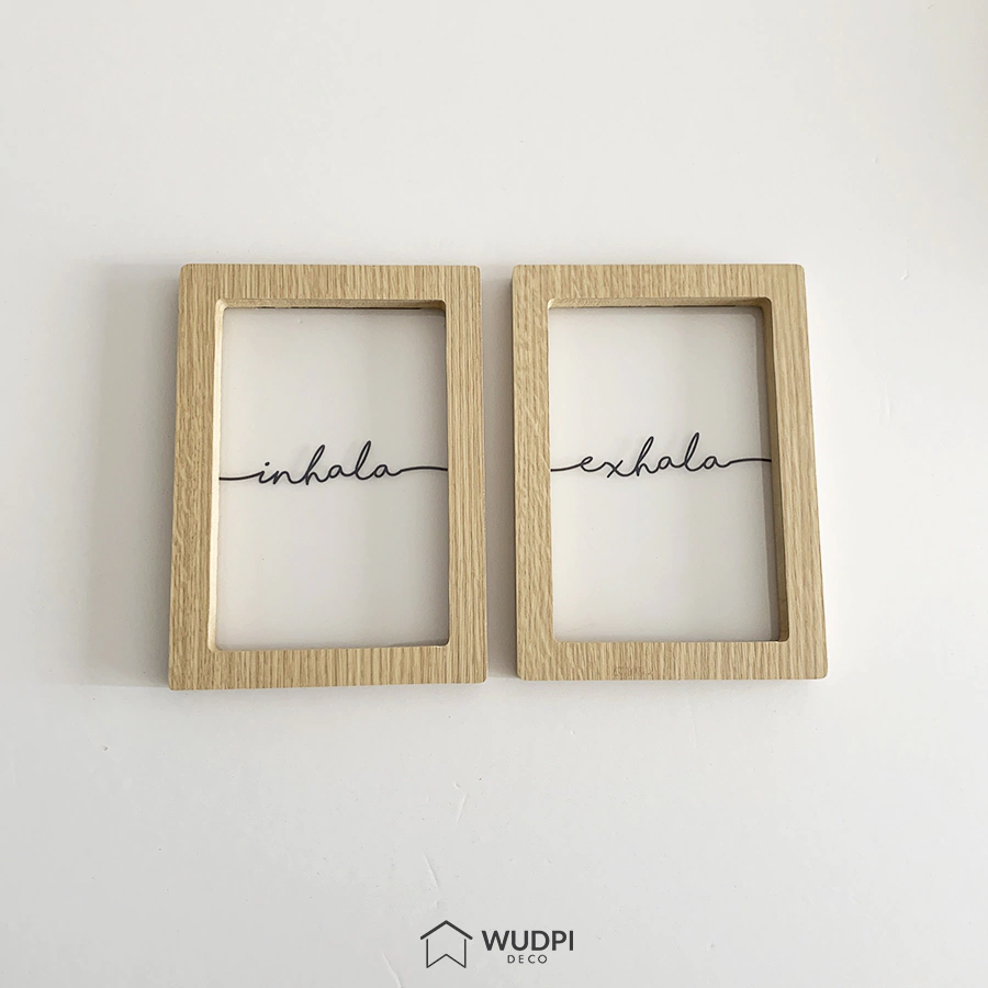Nuestros cuadritos son de mdf con terminación en roble americano de 24mm, con una lámina transparente de PET (polietileno) impresa a color de 1mm.