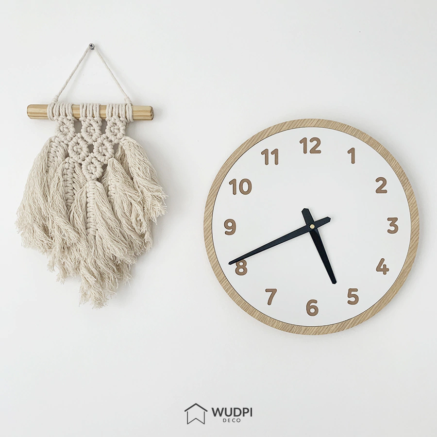 Los relojes big son de mdf con terminación en roble americano en los bordes y enchapado en blanco. Son los relojes más grandes que hacemos y son una bomba!!