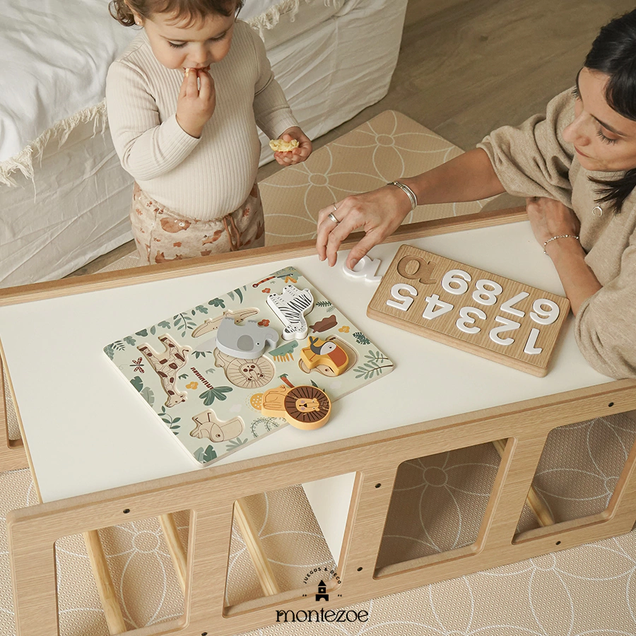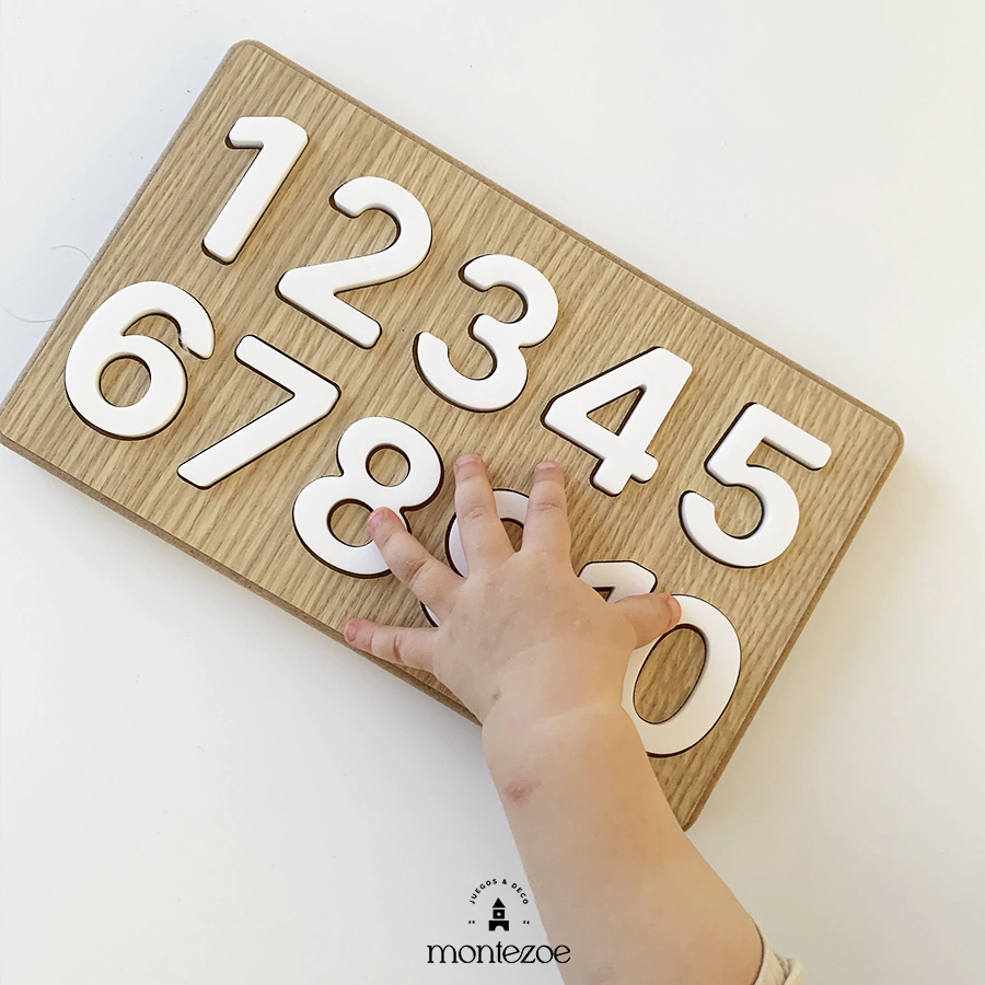 Estos tableros incluyen números del 0 al 10 que las infancias pueden encajar en sus correspondientes espacios.